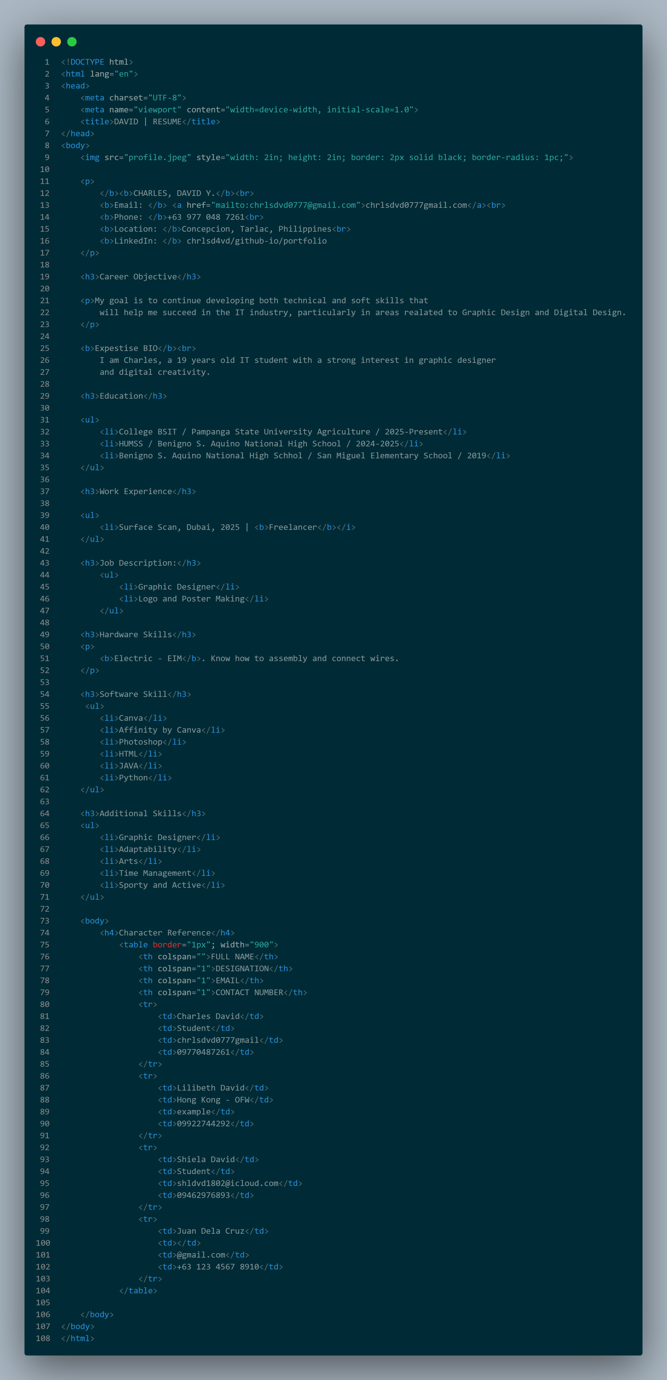 | Shiela David | Student | shldvd1802@icloud.com | 09462976893 |